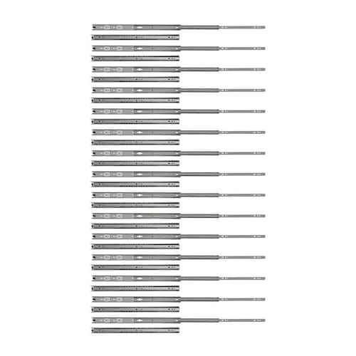 Kit com 30 Corrediças Telescópicas Trilho Zincada 450mm 18Pol. Par para Gaveta Rayco - 15 Pares A Corrediça telescópica 45cmm da Rayco é indicada para gavetas de cozinhas, closets, quartos, banheiros, lavanderias, prateleiras retráteis/extensíveis, bases de teclado e mobiliário em geral. - Marca: Rayco - Referência: R14656-15X - Kit com 30 Corrediças 45cm 15 pares - Comprimento: 450mm 18 Polegadas - Largura: 30mm - Espessura: 10mm - Acompanha 1 par de corrediças - Para uso geral - Possibilita a abertura total da gaveta com deslizamento suave, preciso e resistente - Corpo em aço galvanizado - Deslizamento através de de aço - Tipo: telescópica - O par suporta até 20kg - Peso bruto: 510 gramas o par - : 90 dias