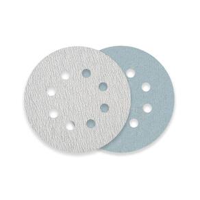 Informações Técnicas: Diâmetro externo: 125mm 5 Grão: 60 Cor: Branco Quantidade de furos: 8 furos Máxima rotação por minuto RPM : 12200 Utilizável em: Madeira, Aço Inox, Aço Carbono e Suas Ligas Composição: Resina, óxido de alumínio, papel e pluma Anti-empastamento Disco para desbaste e remoção de oxidação, tintas e vernizes