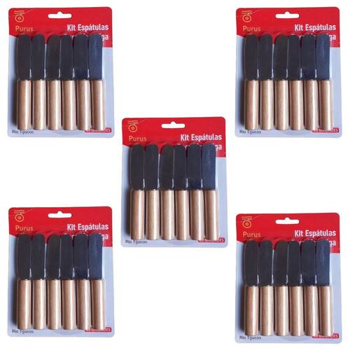 Unidades no Kit: 30 Espátulas Tamanho Total da Espátula: 11 cm Tamanho do Cabo de Madeira: 5,5 cm Material de Fabricação: Aço Inox e Madeira