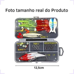 -1 caixinha estojo. -30 iscas artificiais para pesca. Embalagem segura e reforçada. Todas as fotos são de produtos reais e de exclusividade da nossa loja, sendo assim apenas nós temos o direito de imagem sob qualquer mercadoria anunciada. Veja nossos outros produtos um pouco mais abaixo em mais anúncios do vendedor