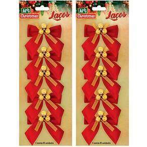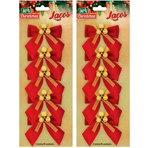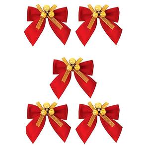6 Kit Com 5 Laços Decorativo Vermelho E Dourado 9cm;