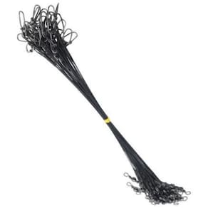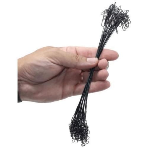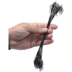 Chicotes em cabo de aço com snap reforçado e girador para ser utilizado como leader em peixes com dentição ou em locais com pedras e troncos evitando o rompimento, produto de primeira qualidade, extremamente resistente e disponíveis em varias libragens e tamanhos na cor black.