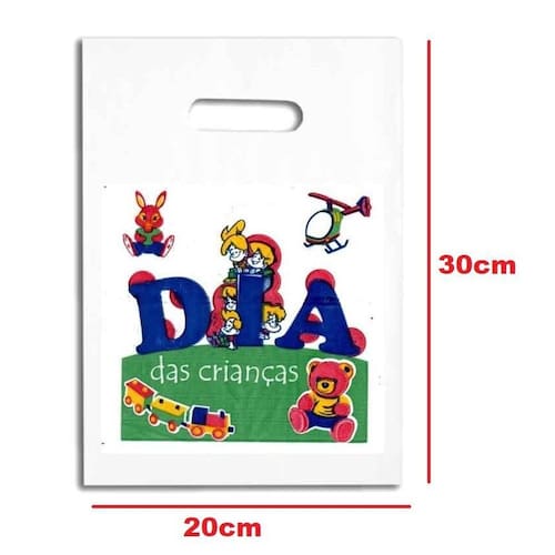 Kit 30 Sacolas Plástica 30X20 Para Dia Das Crianças Para Doces Contém: 30 unidades de sacolas plástica branca personalizada Tamanho aproximado: 30cm x 20cm Material: Plástico Ean: 7798633348363