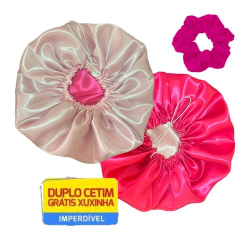 Kit 30 Toucas de Cetim Antifrizz Dupla Face Alto Brilho Ajustável + Xuxinha - Cor: Rosa e Pink