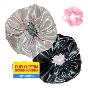 Kit 30 Toucas de Cetim Antifrizz Dupla Face Alto Brilho Ajustável + Xuxinha - Cor: Rosa e Preto