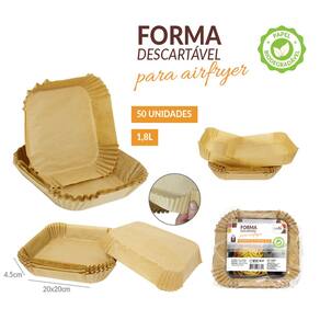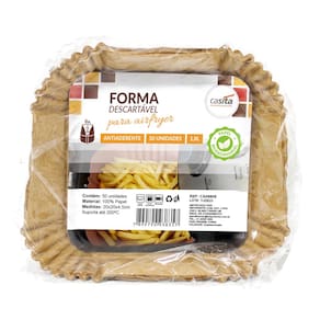 Kit com 300 Formas de Papel Descartável para Airfryer - Praticidade e Limpeza Impecável na Sua Cozinha!Descomplique suas refeições com o Kit 300 Formas de Papel Descartável para Airfryer . Perfeito para quem busca otimizar o tempo e manter a Airfryer sempre limpa, esse kit traz praticidade e qualidade, garantindo uma experiência culinária sem sujeira e sem grudar.Benefícios IncríveisAdeus à Limpeza Pesada : Com as formas adicionais, você não precisa mais perder tempo limpando o cesto da Airfryer. Ao finalizar, é só descartar e sua Airfryer está pronta para o próximo uso.Cozimento Saudável e Sem Gordura : Dispensa o uso de óleo, mantendo seus alimentos mais leves e crocantes. O papel antiaderente de alta qualidade evita que os alimentos grude, preservando sabor e textura.Versatilidade e Compatibilidade : Compatível com diversos modelos de Airfryer, forno elétrico e micro-ondas, estas formas permitem cozinhar uma ampla variedade de receitas de batatas fritas a pequenos bolos.Características do ProdutoTamanho Universal (24x20x4,5 cm) : Formato quadrado com medidas ideais para acomodar diferentes tipos de alimentos e distribuir o calor de maneira uniforme.Material Biodegradável e Resistente : Fabricados em papel de qualidade alimentar, suportam temperaturas de até 200C e são seguros para sua saúde e para o meio ambiente.Quantidade e Praticidade : O kit vem com 300 formas fornecidas, garantindo um estoque consistente e perfeito para o dia a dia agitado.Por que escolher as formas de papel para Airfryer?As formas de papel envolvem oferecer uma solução prática e eficiente para quem quer cozinhar sem se preocupar com a limpeza posterior. Feitas para resistir ao calor e não alterar o sabor dos alimentos, elas tornam cada preparo mais rápido e sem sujeira.Atenção: Nunca pré-aqueça a Airfryer com o papel sem alimentos, pois isso pode causar queimaduras no papel.Quantidade : 300 unidades (6 pacotes de 50).Dimensões : Diâmetro superior 24 cm, diâmetro do fundo 20 cm, altura 4,5 cm.Compatibilidade : Airfryer, forno elétrico e micro-ondas.Não perca a oportunidade de transformar a rotina da sua cozinha! Adquira agora o Kit 300 Formas de Papel Descartável para Airfryer e experimente uma nova maneira de cozinhar com menos esforço e mais sabor.