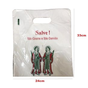 Kit 300 Sacolas Plástica Para São Cosme E Damião 33X24Contém: 300 unidades de sacolas plástica para São Cosme e DamiãoTamanho aproximado: 33cm x 24cmMaterial: Plástico