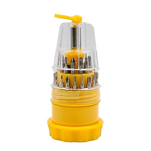 Kit 31 chaves precisão para eletrônicos reparos consertos Kit 31 chaves de precisão para eletrônicos reparos consertos Tenha sempre à mão a ferramenta certa para cada tipo de parafuso. O kit 31 chaves de precisão é a solução ideal para quem busca praticidade, versatilidade e segurança na hora de realizar reparos e manutenções em eletrônicos e acessórios delicados. Composto por 31 ponteiras de alta qualidade e um cabo ergonômico emborrachado, este conjunto foi desenvolvido para atender às mais diversas necessidades de aperto e desaperto com total precisão. Seja para consertar celulares, notebooks, relógios, óculos ou outros dispositivos eletrônicos, este kit oferece o desempenho que você precisa com o cuidado que seus componentes merecem. O cabo emborrachado proporciona firmeza e conforto durante o uso, evitando escorregões e garantindo maior controle nos movimentos. O estojo compacto e resistente facilita o transporte e armazenamento, mantendo todas as peças organizadas e prontas para uso. Fabricado com materiais duráveis como aço inox, borracha e polipropileno, o kit 31 chaves de precisão alia resistência e leveza, tornando-se indispensável para profissionais e entusiastas da manutenção eletrônica. Seu design funcional e cores contrastantes amarelo e preto facilitam a identificação rápida das ferramentas, otimizando o tempo de trabalho. Ficha técnica: - material: aço inox, borracha e pp - dimensões do cabo: 11,5cm altura x 2cm largura - dimensões do estojo: 14cm altura x 5cm largura - cor: amarelo e preto Tipos de ponteiras inclusas: - chaves de fenda: 1.5, 2.0, 2.5, 3.0, 3.5 - chaves allen: h1.3, h1.5, h2.0, h2.5, h3.0, h4.0 - chaves torx: t5, t6, t7, t8, t9, t10, t15, t20 - chaves philips: 3.0, 3.5, 1.7, 2.0, 2.5 - chave estrela: 2.0 - chave triângulo: 3.0 - chave y: y3.0 - chave u: u2.6 Itens inclusos: - 31 ponteiras de precisão - 01 cabo emborrachado Este kit é ideal para quem busca ferramentas de precisão para manutenção de eletrônicos, com foco em qualidade, durabilidade e eficiência. As ponteiras foram projetadas para encaixe perfeito, evitando danos aos parafusos e componentes sensíveis. A variedade de formatos e tamanhos garante compatibilidade com os principais padrões utilizados em dispositivos modernos. Além da qualidade técnica, o kit 31 chaves de precisão conta com de 3 meses contra defeitos de fabricação, oferecendo mais segurança e tranquilidade na sua compra. Em caso de qualquer problema, você poderá contar com suporte especializado para garantir sua satisfação. Invista em um kit completo, confiável e pronto para atender às suas demandas com precisão. Ideal para ou doméstico, este conjunto é o parceiro certo para quem valoriza eficiência e cuidado nos mínimos detalhes.