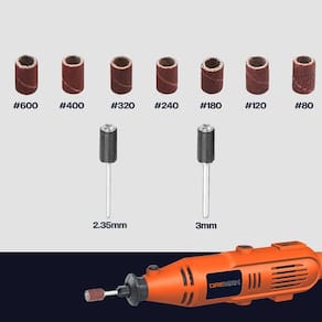Kit 35 Tubos de Lixa 6.35mm 1/4 Pol. Grãos 80 a 600 com 2 Hastes para Micro Retíficas Dremax - Marca: Dremax - Referência: KTBL09 - Diâmetro dos Tubos: 6.35mm 1/4 Pol. - 1 Suporte para Tubos de Lixa Haste 3mm - 1 Suporte para Tubos de Lixa Haste 2.35mm - 5 Tubos de Lixa Grão 80 - 5 Tubos de Lixa Grão 120 - 5 Tubos de Lixa Grão 180 - 5 Tubos de Lixa Grão 240 - 5 Tubos de Lixa Grão 320 - 5 Tubos de Lixa Grão 400 - 5 Tubos de Lixa Grão 600 - Compatível com todas as marcas de micro retífica do mercado - Indicado para moldar, aparar, dar forma, moagem fina, polimento. Acabamento, remoção de material, alisamento, remoção de ferrugem nos metais, etc. - Aplicado a materiais mais macios como madeira dura, madeira macia, plástico, fibra de vidro, alumínio, cerâmicas, borracha, unhas de animais, unhas artificiais, pedras e muito mais. - Velocidade de trabalho indicada: :: de 10.000 a 35.000rpm para madeiras, cerâmicas e pedras :: 35.000rpm para metais :: de 10.000 a 20.000rpm para plástico - : 90 dias contra defeitos de fabricação A DREMAX é a primeira e única marca brasileira dedicada exclusivamente às micro retíficas, acessórios e acoplamentos para esta indispensável ferramenta. Seja para trabalhos de precisão, artesanato, modelagem ou reparos, a DREMAX tem o produto certo para você. Marca: Não Informado Ean: 7734625989855