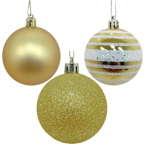 4 Kit Com 9 Bolas Para Árvore De Natal Douradas com Glitter Dourado E Branco 55mm;