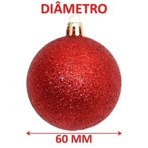 Kit 36 Bolas Vermelha Árvore Natal Lisa Fosca Gliter De 60mm -