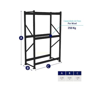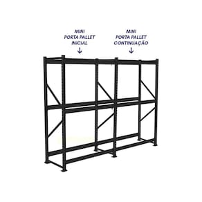 Nosso kit de mini porta pallet preto é ideal para depósitos, estoques e exposição de produtos em atacarejos, pet shops, oficinas, lojas de materiais de construção e muito mais, variando de acordo com a capacidade de peso de cada modelo.com 2,00m de altura e 3,60m de largura, este mini porta pallet proporciona uma exibição/armazenação eficiente dos produtos, maximizando o espaço vertical da sua loja/depósito e permitindo uma organização prática e acessível.dispensa o uso de empilhadeiras, onde as mercadorias são depositadas e retiradas manualmente dos planos, que podem ser com bandejas de aço ou madeira.o mini porta pallet é prático e fácil de montar, com a simples colocação de porcas e parafusos unindo as bandejas às colunas. produzido em aço resistente, com capacidade de 250kg por nível e reforço nas laterais.a pintura do produto é feita por meio da técnica eletrostática, com tratamento anticorrosão uniforme e resistente deixando um acabamento de alto padrão.todas os nossos mini porta pallets possuem qualidade, resistência e durabilidade garantidas pelo uso de matérias-primas de alto padrão, processos produtivos com a mais atual tecnologia e um cuidado especial em cada etapa.- capacidade de cada nível é de 250kg;- fácil de montar;- longarinas ajustáveis;- sapatas de fixação.> o kit contém- 01x mini porta pallet 250kg preto inicial 2,00 x 1,80 x 0,60- 01x mini porta pallet 250kg preto continuação 2,00 x 1,80 x 0,60> especificaçõesmodelo: mini porta pallet pretoquantidade de níveis: 3capacidade de peso: 250kg por nívelmaterial: aço resistentecor: pretopintura: eletrostática> medidas do produtoaltura: 2,00mlargura: 3,60mcomprimento: 0,60m> garantia- 6 meses> entregavia: transportadorafrete: consulte pelo seu cepprazo: consulte pelo seu cep> troca e devoluçãomediante termos da política de trocas e devoluções da empresa.