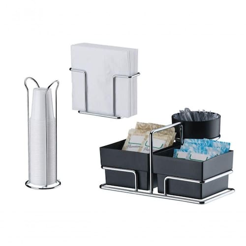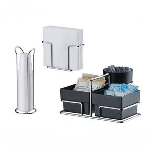 Kit Mesa 3 Peças Preto Future Porta Copos Descartaveis Suporte Guardanapo Sache Açucar Adoçante Mexedor Kit mesa 3 peças preto Future