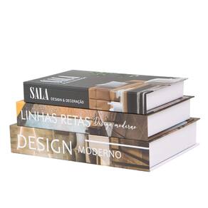 O segredinho das decoradoras e arquitetos A febre do momento no mundo das decoradoras é utilizar de livros fake na composição da decoração de diversos ambientes. Super versáteis, podem ser utilizados como objetos decorativos e também como porta controle, porta joias, porta objetos no geral. Dando um ar de sofisticação em mesas de centro, aparadores, prateleiras, hacks etc. Nossos livros irão encantar você pela riqueza de detalhes e qualidade no acabamento. E nada mais encantador, e inspirador do que utilizar livros fake na decoração de diversos ambientes: salas de estar, escritórios, quartos e onde mais sua imaginação permitir. Qual material é feito Produzido em papelão super resistente com um nobre acabamento, os livros decorativos são a mais nova tendência na decoração contemporânea e permitem diversas combinações e utilizações. Onde colocar A caixa em forma de livro serve como objeto de decoração para mesas de centro, aparadores estantes e todo cantinho que tiver precisando de um up na decoração. Ao mesmo tempo que organiza e armazena objetos que não se quer deixar a vista, como fotos, baralho, controle remoto, maquiagens, joias etc Tamanho das caixas: Caixa maior: 17,3cm x 27,1cm x 5,5cm Caixa média: 15,2cm x 25,1cm x 4,7cm Caixa menor: 13,3cm x 23,3cm x 3,8cm