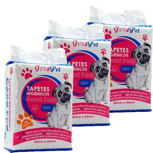 Tapete Higiênico PetLike Good Pad 80x60cm C/30 Unidades - Indicado para cães; - Com atrativo canino; - Melhor distribuição do xixi; - Barreiras que evitam o vazamento; - Com fita adesiva, melhor fixação; - Tamanho 80x60cm. O Tapete Higiênico Pet Like Good Pad é um excelente tapete compacto, indicado para cães de pequeno porte. Simples e prático, é elaborado com matérias que garantem uma super absorção. Com barreiras nas laterais de proteção, evita que o xixi vaze. O seu design garante uma melhor distribuição do xixi. Super leve e fino, o produto ainda é capaz de neutralizar o mau cheiro, conservando um ambiente higienizado. Além disso o tapete possui um atrativo canino, facilitando o treinamento do seu pet seja ele filhote ou adulto. Composição Filme pe, celulose, polímero super absorvente, tnt, papel tissue e fragrância