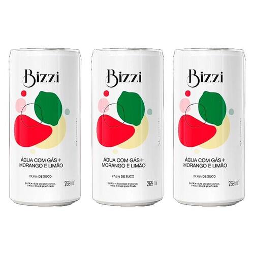 Kit 3X: Água Gaseificada Morango com Limão Sem Açúcar Bizzi 269ml Se você ama morango na sua limonada, a Água Gaseificada Morango com Limão Sem Açúcar Bizzi é a escolha perfeita. Levemente adocicado, somente com o sabor da fruta.