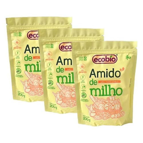 Kit 3X: Amido de Milho Não Transgênico Ecobio 200g O Amido de Milho Não Transgênico Ecobio é livre de transgênicos, vegano e sem glúten. A escolha certa para quem busca uma alimentação mais natural e consciente, sem abrir mão da praticidade e qualidade.