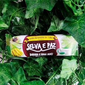 A Barra de Frutas Banana da Terra Orgânica Selva e Paz leva apenas um ingrediente, sem adição de açúcar, conservantes, aromatizantes. Possui sabor irresistível e textura parecida com jujuba