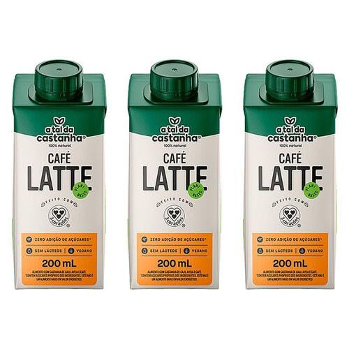 Kit 3x: bebida vegetal café latte a tal da castanha e 3 corações 200ml A bebida vegetal café latte a tal da castanha e 3 corações é uma bebida ready to drink de café, com os leites vegetais que você mais ama