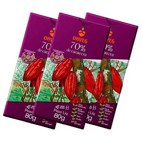 Kit 3x: chocolate 70% cacau cru com açúcar demerara onveg 80g O chocolate 70% cacau cru com açúcar demerara onveg é feito com apenas dois ingredientes e não passa pelo processo de torra das amêndoas, preservando uma das suas maiores riquezas nutricionais, os antioxidantes.