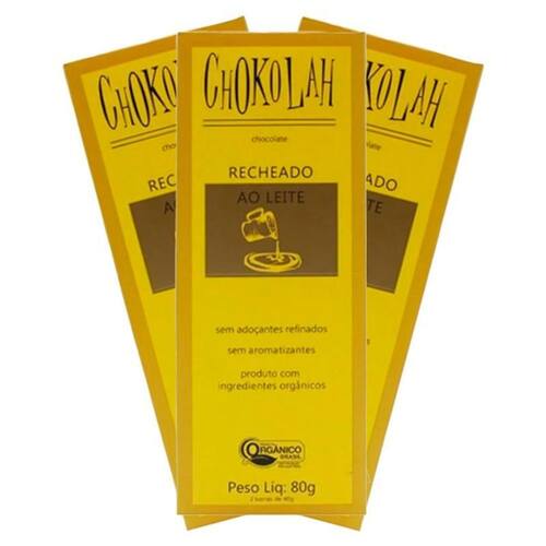 Kit 3x: chocolate ao leite 40% cacau recheado orgânico chokolah 80g
