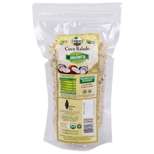 O coco ralado orgânico finococo é obtido da polpa fresca de cocos manejados e processados organicamente, é por isso completamente livre do risco de conter resíduos de agrotóxicos. Apresenta teores superiores a 65% de óleo de coco, o que confere a seus pratos sabor e aroma incomparáveis de coco fresco, ao mesmo tempo em que promove diversos benefícios, como proteção ao sistema digestivo, elevação dos processos metabólicos, melhoria do sistema imunológico, entre outros.