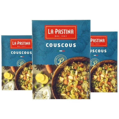 Kit 3X Couscous Italiano La Pastina 500G O Couscous La Pastina é feito de sêmola de alta qualidade obtida a partir do trigo de grano duro cultivado na Itália. Prático e muito versátil, o Couscous La Pastina fica pronto em 5 minutos. Após a hidratação, seus pequenos grãos triplicam de tamanho: de 100 gramas de couscous cru obtém-se 300 gramas pronto. Combina muito bem com vegetais refogados e cortados em cubinhos, frango desfiado, atum em conserva, entre outras deliciosas combinações.Kit com 3500gOrigem : ItáliaNURTRIENTEQUANTIDADE% VDPorção50g 1/4 de xícara Valor Energético173 kcal = 734kj 8%Carboidratos35g 2%Proteínas6g 8%Gorduras Totais1g 2%Gorduras Saturadas0,3g 1%Gorduras Trans0g Fibra alimentar2,2g 9%Sódio25mg 1%