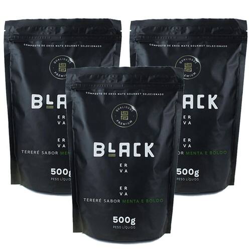 - 3x Erva Mate Tereré Black Erva 500g Sabor Menta E Boldo