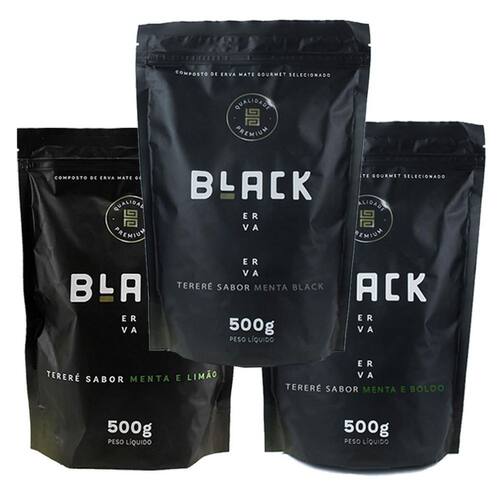 Kit 3x erva mate tereré black erva 500g sabores menta Kit 3x erva mate tereré black erva 500g sabores menta
