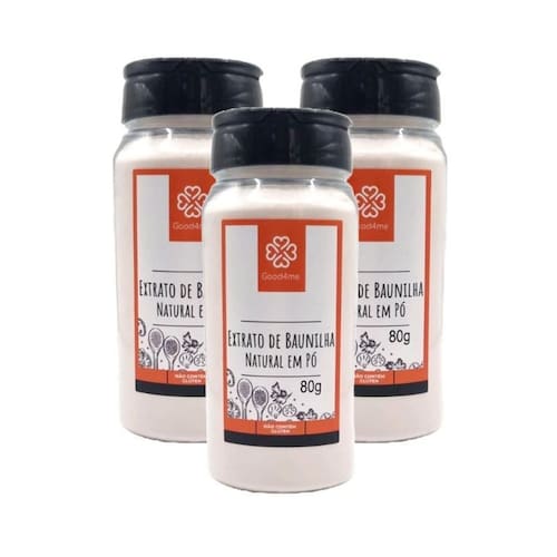 Kit 3X: Extrato de Baunilha em Pó Natural Good4me 80g O Extrato de Baunilha em Pó Natural Good4me é feito a partir de baunilha de alta qualidade, este extrato em pó oferece um aroma incrivelmente rico e um sabor suave e doce que irá aprimorar qualquer receita que você fizer.