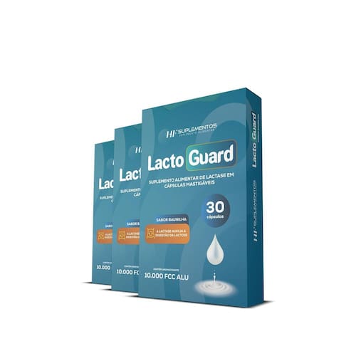 Através deste anúncio, você está adquirindo 3 três Potes de 3x Lacto Guard lactase 30 cáps mastigáveis sabor baunilha hf suplementos