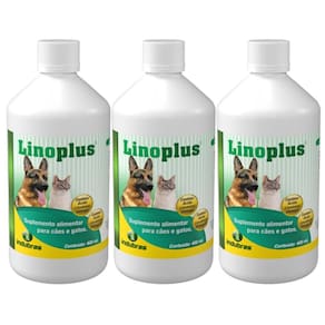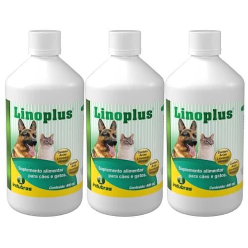 Kit 3X Linoplus 400 Ml Indubras Suplemento Para Cães E Gatos