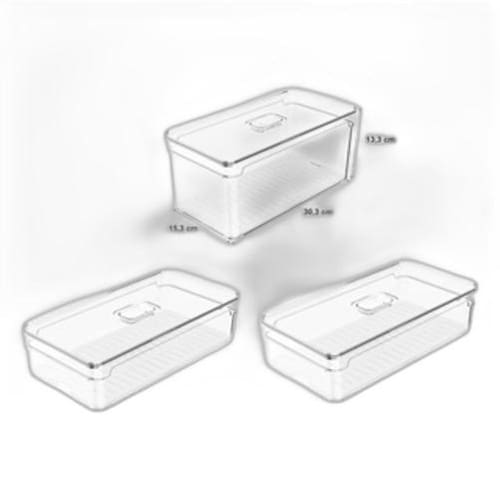 F6234 Conteúdo da Embalagem: 01 Und. De Organizador De Geladeira 5 Litros 02 und. De de Organizador De Geladeira 2,8 Litros Ventilação e Humidade controlada Organização e otimização de espaço Com Bandeja de Drenagem Removível organizadores De Geladeira De Drenagem Com Respiradouro caixa de Armazenamento de Frutas Legumes E Vegetais conjunto Linha Clear Fresh OU Com o organizador de geladeira Clear Fresh, você terá organização e irá conservar e manter o frescor de seus alimentos por mais tempo, a tampa com ventilação ajustável mantém o nível de umidade ideal para cada tipo de alimento, mantendo-os frescos por mais tempo. Possui bandeja de drenagem que impede que a umidade acumulada se mantenha no alimento, evitando o murchamento e deterioração precoce. Material Cesto - POLIPROPILENO : Material com alta resistência a impactos e ao calor. Não transfere odor, nem gosto aos alimentos. Atóxico, pode entrar em contato com alimentos. Resistência à água fervente, suportando até 150 C. Material Organizador - POLIENTIRENO : Material translúcido. Ótima transparência e alto brilho. Não transfere odor, nem gosto aos alimentos. Atóxico, pode entrar em contato com alimentos. CUIDADOS : Não utilizar em micro-ondas e lava louças. Lavar com sabão neutro, não utilizar material abrasivo ou álcool na limpeza. Marca: Não Informado