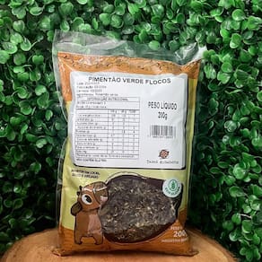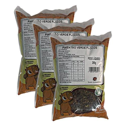Kit 3X: Pimentão Verde em Flocos Tainá Alimentos 200g O Pimentão Verde em Flocos Tainá Alimentos possui sabor suave e levemente picante. É rico em vitaminas A, C e do complexo B e minerais.