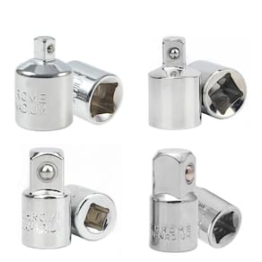 Kit 4 Adaptador de Soquete Macho Fêmea 1/4 3/8 e 1/2 Aço Cr-V - Marca: Eda - Modelo: KADPSOQ - Tamanhos: - 1 Adaptador para soquetes 1/2 F X 3/8 M - 1 Adaptador para soquetes 3/8 F X 1/2 M - 1 Adaptador para soquetes 1/4 F X 3/8 M - 1 Adaptador para soquetes 3/8 F X 1/4 M - Material: Aço Cromo Vanádio - Encaixe perfeito - Utilização prática - Resistência e durabilidade - Permite utilizar um acessório, com tamanho de encaixe quadrado diferente do soquete : 9 dias Marca: Não Informado Ean: 7794569624748