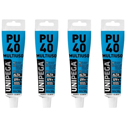 Adquira o Kit com 4 Unidades do Selante Unipega Branco PU-40 Bisnaga e garanta uma selagem eficaz e duradoura para seus projetos.