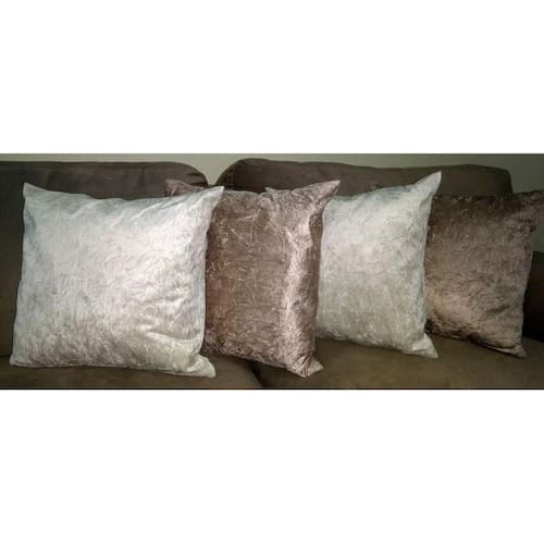 KIT COM 4 ALMOFADAS TECIDO SUED PALHA E BEGE (AMASSADOS) COM ZÍPER E REFIL CHEIO