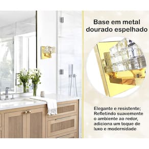 Arandela interna metal e cristal g9 lavabo banheiro quarto