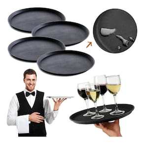 Kit 4 Bandeja De Garçom Antiderrapante Redonda