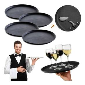 Kit 4 bandejas para garçom - antiderrapante - 40 cm - bar - restaurante - buffet - bandeja para garçons: Esta bandeja antiderrapante é uma peça fundamental e de extrema importância no dia a dia para servir as mesas em restaurantes, festas, bares e buffets, com mais praticidade e segurança. Na parte superior a bandeja tem acabamento fosco com camada antiderrapante que garante segurança e firmeza no momento de servir. Cuidados - lave utilizando detergentes neutros e esponja macia. - evite usar produtos abrasivos, eles podem causar riscos e arranhões nos utensílios. - lave e enxágue em água corrente e quente, secando logo em seguida para evitar manchas. - evitar guardar o produto úmido Dimensão - 40 cm Cor - preta Dúvidas frequentes: 1 - os produtos são novos R: todos os produtos são novos e com . 4 - como são realizadas as entregas R: sim, nos anúncios que exibirem essa opção. Imagens meramente ilustrativas