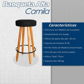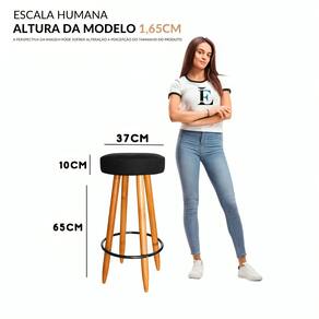 Características do Produto: - Base do assento e fundo Mdf e Mdp de 15MM; - Altura para apoio dos pés: 20 cm; - Altura do Assento: 10 cm; - Parte inferior acabamento em TNT preto; - Estrutura em madeira de eucalipto; - Arco em aço, com pintura especial epóxi; - Suporta uma pessoa até 100 kg; - Garantia 3 meses por nós fabricantes; - Formato Redondo; - Espuma do Assento D-23; - 4 Pés Palito Retrô; - 4 Chapas de Aço Galvanizado para fixação dos pés; Dimensões do produto montado: - Altura: 75 cm; - Largura: 37 cm; - Comprimento: 37 cm; Observações importantes: Para assegurar que sua banqueta mantenha sua durabilidade e beleza ao longo do tempo, siga estas recomendações: 1 - Limpeza: Use pano úmido com sabão neutro, evitando abrasivos. 2 - Proteção Solar: Evite sol direto para prevenir desgaste. 3 - Umidade: Seque imediatamente em caso de derrames. 4 - Uso Adequado: Respeite a capacidade de peso indicada e não faça movimentos perigosos em cima da banqueta. 5 - Manutenção: Inspecione periodicamente e limpe conforme instruções acima. 6 - Armazenamento: Local limpo e seco, protegido de poeira e umidade, não expor ao sol e chuva.