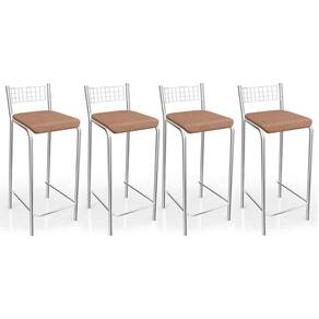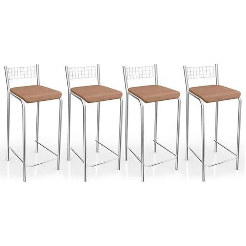 Kit 4 Banqueta de Cozinha Gênova 1B705CR 4 Un Cromado/Linho Capuccino - Kappesberg - Blush