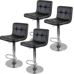 Kit 4 Banquetas Alta Cozinha Bar Balcão Bancada Americana Giratória Gomos PU - PRETA - Preto