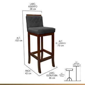 Apresentamos a banqueta Nice, feita com madeira maciça de reflorestamento e acabamento em verniz. Seu assento preenchido com espuma D26 e encosto com espuma D23 garantem conforto duradouro. O encanto adicional vem da costura matelassê no encosto, enquanto o revestimento em suede adiciona uma sensação de luxo. Adapta-se perfeitamente a qualquer espaço, adicionando elegância e conforto instantaneamente. CARACTERÍTICAS TÉCNICAS: - Produzido em Madeira Maciça de Reflorestamento; - Acabamento em Verniz na cor Castanho; - Assento Preenchido com Espuma D26; - Encosto Preenchido com Espuma D23; - Encosto com Costura Matelassê; - Revestimento em Suede na cor Cinza. *Indicada para Bancadas/Mesas com Alt. 100/105 cm. *PRODUTO ENVIADO MONTADO. INFORMAÇÕES TÉCNICAS: Altura Total: 102 cm Altura até Assento: 75 cm Altura até Travessa: 23 cm Altura Encosto: 35 cm Largura Assento: 38 cm Largura Estrutura: 36 cm Profundidade Total: 42 cm Profundidade Assento: 41 cm Peso: 7 kg *Kit Composto por 4 Banquetas Nice. INFORMAÇÕES ADICIONAIS:ATENÇÃO: Móvel produzido em madeira maciça natural podendo ocorrer mudança no tom da madeira conforme o produto;*Conferir se o produto está de acordo com o que comprou, produto danificado não será aceito troca;**As imagens ambientadas são meramente ilustrativas e podem apresentar itens que não compõe o produto. As cores do produto podem variar de acordo com o monitor, a iluminação do ambiente ou sua percepção visual;***Limpeza deve ser feita com pano macio e seco ou levemente umedecido com água e sabão neutro. Não devem ser utilizados abrasivos como palha de aço e objetos cortantes;Garantia para defeitos de fabricação conforme Código de Defesa do Consumidor. Marca: CCS Interiores