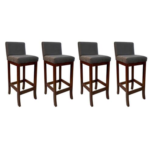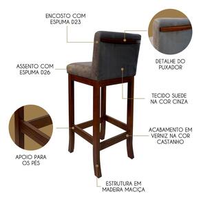 Kit 4 Banquetas Alta Estofada em Madeira Maciça Castanho Melody Suede Cinza