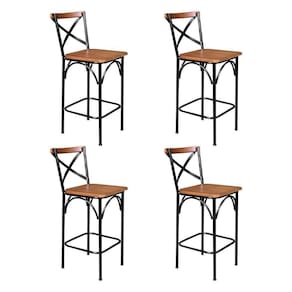 Kit 4 Banquetas Alta Industrial Paris Base Alumínio Com Encosto - Castanho - Cor: Marrom