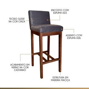 A Banqueta Alta Lisboa é uma peça de destaque para qualquer ambiente, produzida em Madeira Maciça com acabamento em Verniz Castanho, garantindo durabilidade e elegância. Seu assento e encosto preenchidos com Espuma D26 e D23, respectivamente, oferecem o máximo conforto para refeições e momentos de descontração. Além disso, o revestimento em Tecido Suede na cor Cinza confere um toque moderno e versátil. Seja na cozinha, sala de jantar ou espaço gourmet, essa banqueta é a escolha perfeita para agregar charme e funcionalidade ao lar!