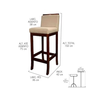 INFORMAÇÕES TÉCNICAS: Altura Total: 102 cm Altura até Assento: 75 cm Altura até Travessa: 23 cm Altura Encosto: 35 cm Largura Assento: 38 cm Largura Estrutura: 36 cm Profundidade Total: 42 cm Profundidade Assento: 41 cm Peso: 7 kg INFORMAÇÕES ADICIONAIS:ATENÇÃO: Móvel produzido em madeira maciça natural podendo ocorrer mudança no tom da madeira conforme o produto;*Conferir se o produto está de acordo com o que comprou, produto danificado não será aceito troca;**As imagens ambientadas são meramente ilustrativas e podem apresentar itens que não compõe o produto. As cores do produto podem variar de acordo com o monitor, a iluminação do ambiente ou sua percepção visual;***Limpeza deve ser feita com pano macio e seco ou levemente umedecido com água e sabão neutro. Não devem ser utilizados abrasivos como palha de aço e objetos cortantes;Garantia para defeitos de fabricação conforme Código de Defesa do Consumidor. Marca: CCS Interiores