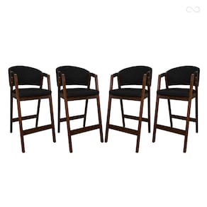 CARACTERÍSTICAS TÉCNICAS: - Produzido em Madeira Maciça; - Acabamento Verniz na Cor Pinhão; - Assento com Espuma D26; - Encosto com Espuma D23; - Revestido em Tecido Material Sintético na Cor Preto.
