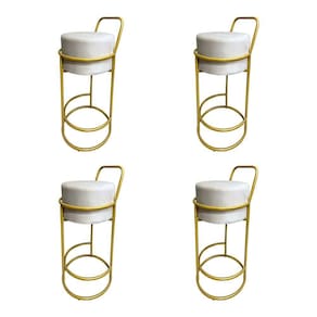 AS IMAGENS SÃO MERAMENTE ILUSTRATIVAS E PODEM SOFRER VARIAÇÕES DE COR E PEQUENOS DETALHES DE ACORDO COM O SEU MONITOR, ILUMINAÇÃO DO AMBIENTE E ATÉ MESMO A SUA PERCEPÇÃO 4 Banquetas Alta Redonda Base Dourada Veludo Bege